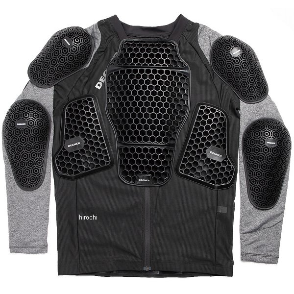 デグナー DEGNER インナープロテクター長袖サイズ:Lカラー:ブラックプロテクター装着部位:肩、肘、胸、背中素材:ポリエステル/ポリウレタンCE規格レベル2取得の安全性が高いエアスループロテクターを装備したインナーです。ハニカム構造で軽さを実現し、装着時の負担を軽減します。通気性も良く、メッシュジャケットにもおすすめです。
