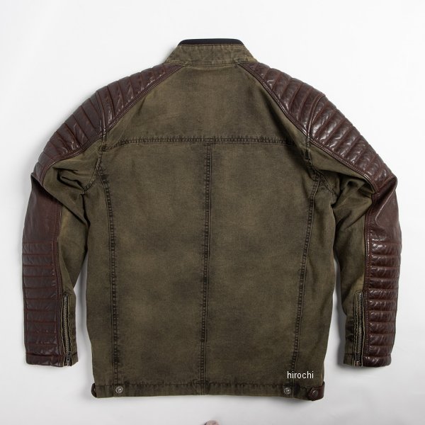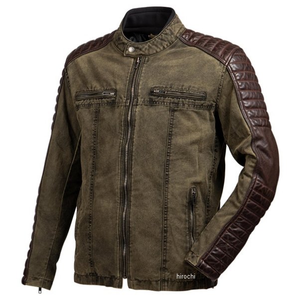 デグナー DEGNER 春夏モデル テキスタイル&レザーコンビジャケットサイズ:Mカラー:カーキ/ブラウン素材:コットン/牛革ウォッシュ加工を施した渋い風合いのコットンと、牛の中でも頑丈なバッファロー革を使用したコンビジャケット。肩から袖にかけての牛革はデザインのアクセントだけでなく、転倒時の備えにもなる。カラーごとに異なるインナーもこだわりポイント。天然素材・コットンを使用。通気性・吸水性に優れ、汗をしっかり吸収&発散するので、サラサラの着心地。牛革は、バイク乗りが愛するライダースジャケットをはじめ、ライダースアイテムに多く用いられている素材。堅牢で耐久性が高く丈夫。
