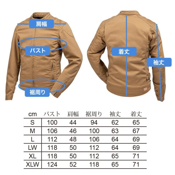 デグナー DEGNER 春夏モデル AAコットンジャケットサイズ:Lカラー:ベージュ素材:コットンCE規格AAクラスのコーデュラツイルを使用。テントや軍事品にも使用される実績のある素材。耐摩耗性に優れながらも軽くて着心地がよい。使用シーンを選ばないシンプルデザインなので、乗車時だけでなくシティユースにもおすすめ。脇下とアクションプリーツ内にベンチレーションを配置。幅広い季節に対応。ダブルファスナーで首元の突き上げ感を軽減。