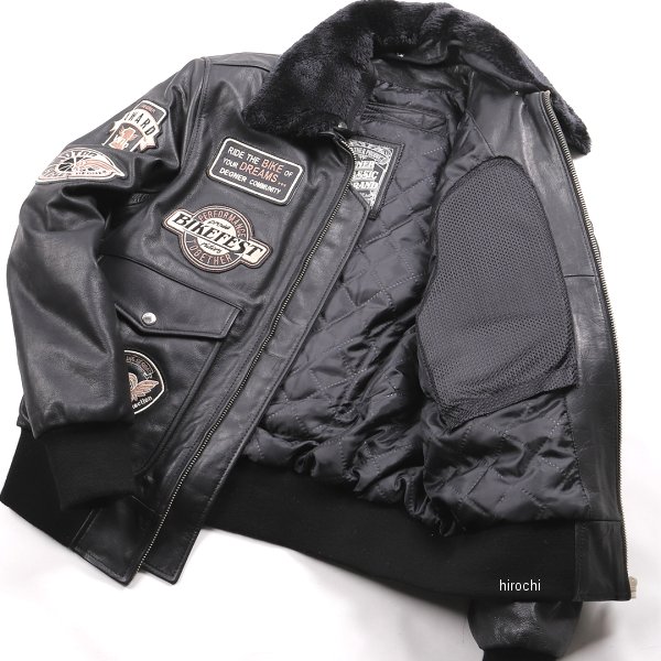 デグナー DEGNER 16WJ-10 ヴィンテージフライトジャケット ブラック 3XLサイズサイズ:3XLサイズカラー:ブラック素材:牛革プロテクター装備箇所:肩、肘、背中、胸好評につきS、2XL、3XLサイズ追加決定。映画トップガンより着想を得たG-1スタイルのフライトジャケット。モーターテイストワッペンが雰囲気十分。手首/ウエストのリブ、取り外しできるボア襟が真冬の冷たい風をシャットアウト。牛革は、バイク乗りが愛するライダースジャケットをはじめ、ライダースアイテムに多く用いられている素材。堅牢で耐久性が高く丈夫。※商品写真は参考です。実際の商品と異なる場合がございますのでご注意ください。