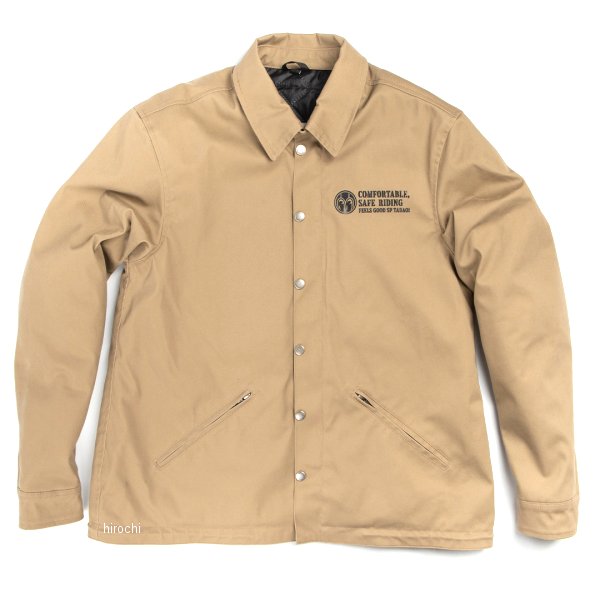 デグナー DEGNER SPJ-10 SP忠男 防風ツイルコーチジャケット ベージュ XLサイズサイズ:XLサイズカラー:ベージュ素材:コットンプロテクター装備箇所:肩、肘、背中、胸ライダーの気持ちイー!を引き出すマフラーを生み出し続けてきた、SP忠男とのコラボレーション。背中に大きく目玉プリントが施された冬用コーチジャケット。プロテクター入り、防風仕様でツーリングにも最適。襟元のボタンや裾のドローコードで風の侵入も防ぐ。※商品写真は参考です。実際の商品と異なる場合がございますのでご注意ください。