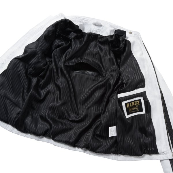 RLJ1101 ライズ RIDEZ ジャケット COMPサイズ:Mカラー:ホワイト/ブラック【素材】羊革【仕様説明】RIDEZ GENUINE LEATHERSの新作ライダース”COMP JACKET”(コンプジャケット)レーサーテイストを感じるダブルライン、レザーの質感に合わせた加工のワッペンでオーダーメイドしたかのような雰囲気のジャケットに。デフォルトでホワイトレザーにエイジング加工を施してあるので、気兼ねなく日常使いをして、変化を楽しんで頂きたい。