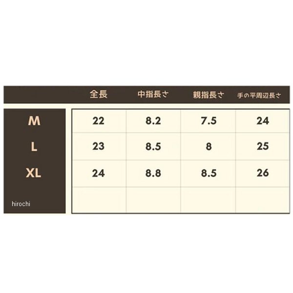 ライズ RIDEZ MOTO GLOVES DEFOE レザーグローブサイズ:XLカラー:ブラウン【仕様説明】ヨーロッパ・ブリテシッシュデザインをコンセプトに制作しました。シリーズの中でひときわ目立つシャーリング。レザーをジャバラ状縮め加工する事で、グローブが綺麗な曲線カーブを描き、自然とグリップが握りやすい形になっています。コンチョボタンには、RIDEZの新しいロゴを刻印、細部にはRIDEZのタグを配置しました。サイズ調整には、ベルクロは(マジックテープ)あえて使わず、ボタンとファスナーを採用しました。耐久性も高く長年愛用して頂けるように細部まで拘った手袋です。・プロテクターバイカーにとって、グローブは必須アイテムで、相棒でもあります。安心して長年愛用頂けるように、プロクターを配置しました。プロテクターを内部に入れ込む事で、目立ちにくく、ライダースグローブとは思えないスタイリッシュなグローブが完成しました。・タッチパネル対応スマホを操作する「親指」「人差し指」はタッチパネルに対応しています。手袋をつけたままでも操作可能で秋冬の寒い時期に特に活躍します。最近ではガソリンスタンドやコンビニなどでのスマホ決済が定番化しており、手袋を取らずに、すぐに操作できると好評です。・牛革グローブ素材のポイントとして柔軟性と耐久性があります。繊細なクラッチ操作・ブレーキングに必要な柔軟性、ライド中は常に稼働し摩耗に耐える耐久性です。両方を兼ね備えた素材として、牛革を採用しました。質感に拘り、落ち着いた光沢がある革を厳選し使用しました。