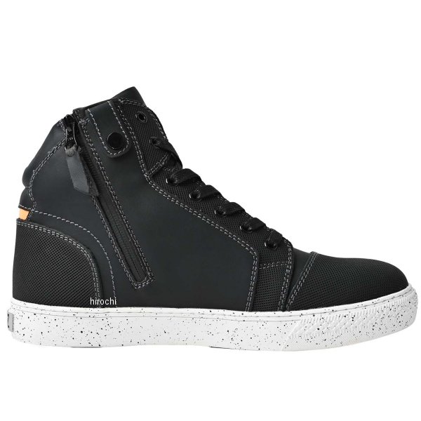ライズ RIDEZ バイクスニーカー MOTO-MAX2サイズ:26.0cmカラー:ブラック【仕様説明】MOTOMAXは、細部に渡って見直しを図り、様々なシーンで毎日履けるスニーカーになりました。バイク用でありながら、普段からご愛用頂けるシューズです。シンプルを極限まで、追求することで、真の美しい豊かなデザイン。素材に拘り、質感をあげ、ロゴを刻印にする事で、デザインを邪魔することなく、究極のシンプルなバイクシューズが誕生しました。・シンセティックレザーMOTOMAX2はシンセティックレザー+本革のハイブリットで構成されています。耐水性があり、突然の雨でも全く問題無くご利用頂けます。耐水性にすぐれていますので、雨に濡れる事無く快適なライドを実現できます。防汚にも対応しており、汚れにくく、きれいな状態を維持します。メンテナンスフリーなので、普段使いしやすいアイテムです。・くつひも(防汚れ加工)MOTOMAX2では靴紐にも拘りました。フッ素系の特殊加工をする事で、撥水性に優れ、汚れにくく靴紐へのダメージを減らす事に成功しました。・サイドジップMOTOMAX2では、日々お使い頂く事を想定し、脱ぎ履きしやすいように、サイドにジップを設置。これによりフィット感はそのままで、靴紐を結ぶ手間を大幅に減らしました。・YKK製 止水ファスナーMOTOMAX2にYKK止水ファスナーを採用。履く度に上下するチャックはかなりの負荷が掛かっています、また、ライド中の突然の雨や風などバイクのハードシーンでは通常のチャックでは破損する可能性があるため、MOTOMAX2ではYKK製に拘って採用しました。・ステップキャッチライディングポジションの際にソールが自然とステップがひっかる構造になっています。そのため楽なライディング姿勢を維持する事ができます。また、ステップ滑り防止機能にもなります。・高い視認性MOTOMAX2は、視認性に注目し、ソールはオレンジの蛍光色にしました。少しでも目に留まりやすいカラーにする事で、事故の抑制につながります。・プロテクター一見普通のハイカットに見えますが、実はくるぶしの刻印のあたりには、特殊なプロテクターを内蔵しています。たとえ立ちゴケでも、バイクに挟まれてケガしやすい部分なのです。見た感じはほとんど普通の靴と変わりませんが、バイク専用設計となっており、安全面もしっかりと考えられた商品です。・プロテクションミッドソール茶色ソールには、通常のソールと異なり、特殊な形状になっています。2枚構造となっており、中には形状を維持できるように特殊合金を内蔵。ハードなシーンでも、靴の形を維持し、いざと言うときにあなたの足を守ます。