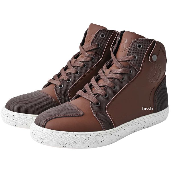 ライズ RIDEZ バイクスニーカー MOTO-MAX2サイズ:26.0cmカラー:ブラウン【仕様説明】MOTOMAXは、細部に渡って見直しを図り、様々なシーンで毎日履けるスニーカーになりました。バイク用でありながら、普段からご愛用頂けるシューズです。シンプルを極限まで、追求することで、真の美しい豊かなデザイン。素材に拘り、質感をあげ、ロゴを刻印にする事で、デザインを邪魔することなく、究極のシンプルなバイクシューズが誕生しました。・シンセティックレザーMOTOMAX2はシンセティックレザー+本革のハイブリットで構成されています。耐水性があり、突然の雨でも全く問題無くご利用頂けます。耐水性にすぐれていますので、雨に濡れる事無く快適なライドを実現できます。防汚にも対応しており、汚れにくく、きれいな状態を維持します。メンテナンスフリーなので、普段使いしやすいアイテムです。・くつひも(防汚れ加工)MOTOMAX2では靴紐にも拘りました。フッ素系の特殊加工をする事で、撥水性に優れ、汚れにくく靴紐へのダメージを減らす事に成功しました。・サイドジップMOTOMAX2では、日々お使い頂く事を想定し、脱ぎ履きしやすいように、サイドにジップを設置。これによりフィット感はそのままで、靴紐を結ぶ手間を大幅に減らしました。・YKK製 止水ファスナーMOTOMAX2にYKK止水ファスナーを採用。履く度に上下するチャックはかなりの負荷が掛かっています、また、ライド中の突然の雨や風などバイクのハードシーンでは通常のチャックでは破損する可能性があるため、MOTOMAX2ではYKK製に拘って採用しました。・ステップキャッチライディングポジションの際にソールが自然とステップがひっかる構造になっています。そのため楽なライディング姿勢を維持する事ができます。また、ステップ滑り防止機能にもなります。・高い視認性MOTOMAX2は、視認性に注目し、ソールはオレンジの蛍光色にしました。少しでも目に留まりやすいカラーにする事で、事故の抑制につながります。・プロテクター一見普通のハイカットに見えますが、実はくるぶしの刻印のあたりには、特殊なプロテクターを内蔵しています。たとえ立ちゴケでも、バイクに挟まれてケガしやすい部分なのです。見た感じはほとんど普通の靴と変わりませんが、バイク専用設計となっており、安全面もしっかりと考えられた商品です。・プロテクションミッドソール茶色ソールには、通常のソールと異なり、特殊な形状になっています。2枚構造となっており、中には形状を維持できるように特殊合金を内蔵。ハードなシーンでも、靴の形を維持し、いざと言うときにあなたの足を守ます。