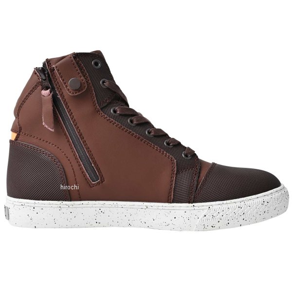 ライズ RIDEZ バイクスニーカー MOTO-MAX2サイズ:27.0cmカラー:ブラウン【仕様説明】MOTOMAXは、細部に渡って見直しを図り、様々なシーンで毎日履けるスニーカーになりました。バイク用でありながら、普段からご愛用頂けるシューズです。シンプルを極限まで、追求することで、真の美しい豊かなデザイン。素材に拘り、質感をあげ、ロゴを刻印にする事で、デザインを邪魔することなく、究極のシンプルなバイクシューズが誕生しました。・シンセティックレザーMOTOMAX2はシンセティックレザー+本革のハイブリットで構成されています。耐水性があり、突然の雨でも全く問題無くご利用頂けます。耐水性にすぐれていますので、雨に濡れる事無く快適なライドを実現できます。防汚にも対応しており、汚れにくく、きれいな状態を維持します。メンテナンスフリーなので、普段使いしやすいアイテムです。・くつひも(防汚れ加工)MOTOMAX2では靴紐にも拘りました。フッ素系の特殊加工をする事で、撥水性に優れ、汚れにくく靴紐へのダメージを減らす事に成功しました。・サイドジップMOTOMAX2では、日々お使い頂く事を想定し、脱ぎ履きしやすいように、サイドにジップを設置。これによりフィット感はそのままで、靴紐を結ぶ手間を大幅に減らしました。・YKK製 止水ファスナーMOTOMAX2にYKK止水ファスナーを採用。履く度に上下するチャックはかなりの負荷が掛かっています、また、ライド中の突然の雨や風などバイクのハードシーンでは通常のチャックでは破損する可能性があるため、MOTOMAX2ではYKK製に拘って採用しました。・ステップキャッチライディングポジションの際にソールが自然とステップがひっかる構造になっています。そのため楽なライディング姿勢を維持する事ができます。また、ステップ滑り防止機能にもなります。・高い視認性MOTOMAX2は、視認性に注目し、ソールはオレンジの蛍光色にしました。少しでも目に留まりやすいカラーにする事で、事故の抑制につながります。・プロテクター一見普通のハイカットに見えますが、実はくるぶしの刻印のあたりには、特殊なプロテクターを内蔵しています。たとえ立ちゴケでも、バイクに挟まれてケガしやすい部分なのです。見た感じはほとんど普通の靴と変わりませんが、バイク専用設計となっており、安全面もしっかりと考えられた商品です。・プロテクションミッドソール茶色ソールには、通常のソールと異なり、特殊な形状になっています。2枚構造となっており、中には形状を維持できるように特殊合金を内蔵。ハードなシーンでも、靴の形を維持し、いざと言うときにあなたの足を守ます。