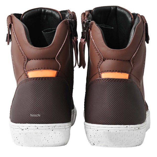 ライズ RIDEZ バイクスニーカー MOTO-MAX2サイズ:28.0cmカラー:ブラウン【仕様説明】MOTOMAXは、細部に渡って見直しを図り、様々なシーンで毎日履けるスニーカーになりました。バイク用でありながら、普段からご愛用頂けるシューズです。シンプルを極限まで、追求することで、真の美しい豊かなデザイン。素材に拘り、質感をあげ、ロゴを刻印にする事で、デザインを邪魔することなく、究極のシンプルなバイクシューズが誕生しました。・シンセティックレザーMOTOMAX2はシンセティックレザー+本革のハイブリットで構成されています。耐水性があり、突然の雨でも全く問題無くご利用頂けます。耐水性にすぐれていますので、雨に濡れる事無く快適なライドを実現できます。防汚にも対応しており、汚れにくく、きれいな状態を維持します。メンテナンスフリーなので、普段使いしやすいアイテムです。・くつひも(防汚れ加工)MOTOMAX2では靴紐にも拘りました。フッ素系の特殊加工をする事で、撥水性に優れ、汚れにくく靴紐へのダメージを減らす事に成功しました。・サイドジップMOTOMAX2では、日々お使い頂く事を想定し、脱ぎ履きしやすいように、サイドにジップを設置。これによりフィット感はそのままで、靴紐を結ぶ手間を大幅に減らしました。・YKK製 止水ファスナーMOTOMAX2にYKK止水ファスナーを採用。履く度に上下するチャックはかなりの負荷が掛かっています、また、ライド中の突然の雨や風などバイクのハードシーンでは通常のチャックでは破損する可能性があるため、MOTOMAX2ではYKK製に拘って採用しました。・ステップキャッチライディングポジションの際にソールが自然とステップがひっかる構造になっています。そのため楽なライディング姿勢を維持する事ができます。また、ステップ滑り防止機能にもなります。・高い視認性MOTOMAX2は、視認性に注目し、ソールはオレンジの蛍光色にしました。少しでも目に留まりやすいカラーにする事で、事故の抑制につながります。・プロテクター一見普通のハイカットに見えますが、実はくるぶしの刻印のあたりには、特殊なプロテクターを内蔵しています。たとえ立ちゴケでも、バイクに挟まれてケガしやすい部分なのです。見た感じはほとんど普通の靴と変わりませんが、バイク専用設計となっており、安全面もしっかりと考えられた商品です。・プロテクションミッドソール茶色ソールには、通常のソールと異なり、特殊な形状になっています。2枚構造となっており、中には形状を維持できるように特殊合金を内蔵。ハードなシーンでも、靴の形を維持し、いざと言うときにあなたの足を守ます。