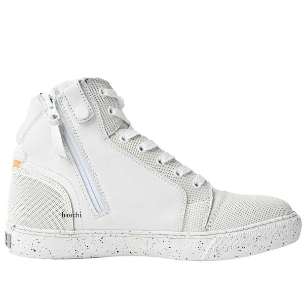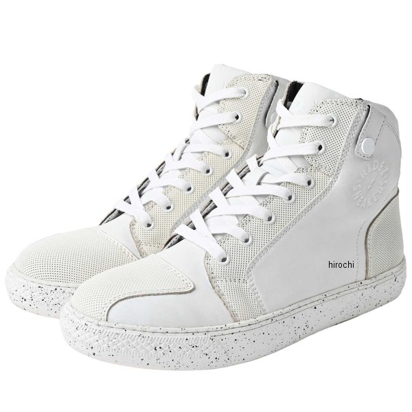 ライズ RIDEZ バイクスニーカー MOTO-MAX2サイズ:26.0cmカラー:ホワイト【仕様説明】MOTOMAXは、細部に渡って見直しを図り、様々なシーンで毎日履けるスニーカーになりました。バイク用でありながら、普段からご愛用頂けるシューズです。シンプルを極限まで、追求することで、真の美しい豊かなデザイン。素材に拘り、質感をあげ、ロゴを刻印にする事で、デザインを邪魔することなく、究極のシンプルなバイクシューズが誕生しました。・シンセティックレザーMOTOMAX2はシンセティックレザー+本革のハイブリットで構成されています。耐水性があり、突然の雨でも全く問題無くご利用頂けます。耐水性にすぐれていますので、雨に濡れる事無く快適なライドを実現できます。防汚にも対応しており、汚れにくく、きれいな状態を維持します。メンテナンスフリーなので、普段使いしやすいアイテムです。・くつひも(防汚れ加工)MOTOMAX2では靴紐にも拘りました。フッ素系の特殊加工をする事で、撥水性に優れ、汚れにくく靴紐へのダメージを減らす事に成功しました。・サイドジップMOTOMAX2では、日々お使い頂く事を想定し、脱ぎ履きしやすいように、サイドにジップを設置。これによりフィット感はそのままで、靴紐を結ぶ手間を大幅に減らしました。・YKK製 止水ファスナーMOTOMAX2にYKK止水ファスナーを採用。履く度に上下するチャックはかなりの負荷が掛かっています、また、ライド中の突然の雨や風などバイクのハードシーンでは通常のチャックでは破損する可能性があるため、MOTOMAX2ではYKK製に拘って採用しました。・ステップキャッチライディングポジションの際にソールが自然とステップがひっかる構造になっています。そのため楽なライディング姿勢を維持する事ができます。また、ステップ滑り防止機能にもなります。・高い視認性MOTOMAX2は、視認性に注目し、ソールはオレンジの蛍光色にしました。少しでも目に留まりやすいカラーにする事で、事故の抑制につながります。・プロテクター一見普通のハイカットに見えますが、実はくるぶしの刻印のあたりには、特殊なプロテクターを内蔵しています。たとえ立ちゴケでも、バイクに挟まれてケガしやすい部分なのです。見た感じはほとんど普通の靴と変わりませんが、バイク専用設計となっており、安全面もしっかりと考えられた商品です。・プロテクションミッドソール茶色ソールには、通常のソールと異なり、特殊な形状になっています。2枚構造となっており、中には形状を維持できるように特殊合金を内蔵。ハードなシーンでも、靴の形を維持し、いざと言うときにあなたの足を守ます。