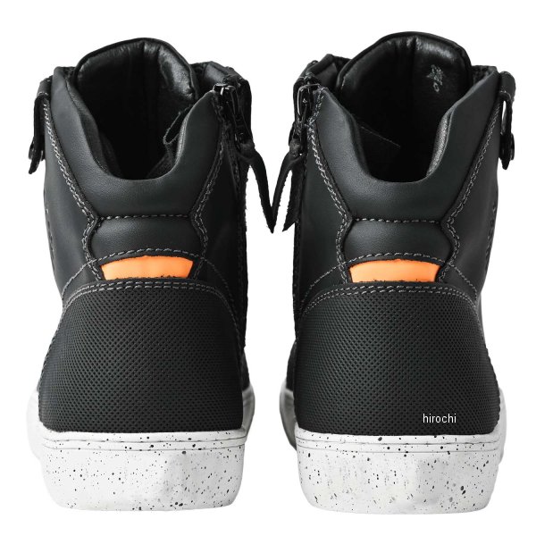 ライズ RIDEZ バイクスニーカー MOTO-MAX2サイズ:24.0cmカラー:ブラック【仕様説明】MOTOMAXは、細部に渡って見直しを図り、様々なシーンで毎日履けるスニーカーになりました。バイク用でありながら、普段からご愛用頂けるシューズです。シンプルを極限まで、追求することで、真の美しい豊かなデザイン。素材に拘り、質感をあげ、ロゴを刻印にする事で、デザインを邪魔することなく、究極のシンプルなバイクシューズが誕生しました。・シンセティックレザーMOTOMAX2はシンセティックレザー+本革のハイブリットで構成されています。耐水性があり、突然の雨でも全く問題無くご利用頂けます。耐水性にすぐれていますので、雨に濡れる事無く快適なライドを実現できます。防汚にも対応しており、汚れにくく、きれいな状態を維持します。メンテナンスフリーなので、普段使いしやすいアイテムです。・くつひも(防汚れ加工)MOTOMAX2では靴紐にも拘りました。フッ素系の特殊加工をする事で、撥水性に優れ、汚れにくく靴紐へのダメージを減らす事に成功しました。・サイドジップMOTOMAX2では、日々お使い頂く事を想定し、脱ぎ履きしやすいように、サイドにジップを設置。これによりフィット感はそのままで、靴紐を結ぶ手間を大幅に減らしました。・YKK製 止水ファスナーMOTOMAX2にYKK止水ファスナーを採用。履く度に上下するチャックはかなりの負荷が掛かっています、また、ライド中の突然の雨や風などバイクのハードシーンでは通常のチャックでは破損する可能性があるため、MOTOMAX2ではYKK製に拘って採用しました。・ステップキャッチライディングポジションの際にソールが自然とステップがひっかる構造になっています。そのため楽なライディング姿勢を維持する事ができます。また、ステップ滑り防止機能にもなります。・高い視認性MOTOMAX2は、視認性に注目し、ソールはオレンジの蛍光色にしました。少しでも目に留まりやすいカラーにする事で、事故の抑制につながります。・プロテクター一見普通のハイカットに見えますが、実はくるぶしの刻印のあたりには、特殊なプロテクターを内蔵しています。たとえ立ちゴケでも、バイクに挟まれてケガしやすい部分なのです。見た感じはほとんど普通の靴と変わりませんが、バイク専用設計となっており、安全面もしっかりと考えられた商品です。・プロテクションミッドソール茶色ソールには、通常のソールと異なり、特殊な形状になっています。2枚構造となっており、中には形状を維持できるように特殊合金を内蔵。ハードなシーンでも、靴の形を維持し、いざと言うときにあなたの足を守ます。