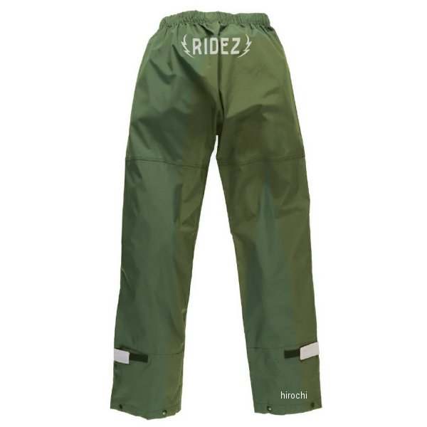 ライズ RIDEZ レインパンツ MOTTO MICRO RAIN PANTSサイズ:4Lカラー:モスグリーン【高い防水性能:20,000mmH20】バイクに乗っているとき乗車姿勢による負荷や走行風による圧がかかるため、高い基準の耐水圧が必要です。高い水準での防水性能を実現。前立てもついて前方からの浸水を軽減します。【ムレを軽減:15,000g/ m 24h】ムレを軽減し快適。透湿性 15,000g/m2。24h激しい運動に適した数値をはるかに超える透湿性を誇ります。悪天候時のツーリングでも快適に過ごせます。【伸びるストレッチ快適な着心地】快適ストレッチ。高い耐水圧と透湿性を保ちつつ、ストレッチ性も確保しました。動きやすく快適に雨や風の日のライディングも楽しんでいただけます。動きやすさは安全性につながります。【コンパクトポケッタブル簡単収納】ポケットに収納が可能になりました。持ち運びがさらにラクラク、どこにでもしまえるコンパクトさ。雨が降りそうな日はバッグにポンと入れてバイクでGO。【自由に選べる色/サイズ】上下で異なるサイズやカラーを選べるのがポイント。消耗具合が違う上下で必要に応じて別々で購入することができます。【前たて仕様防水性能UP】雨天時のライディング。前立てをつけることで、前方からの浸水をさらに防ぐことができます。よりしっかりした作りとなり、耐久性も上がりました。