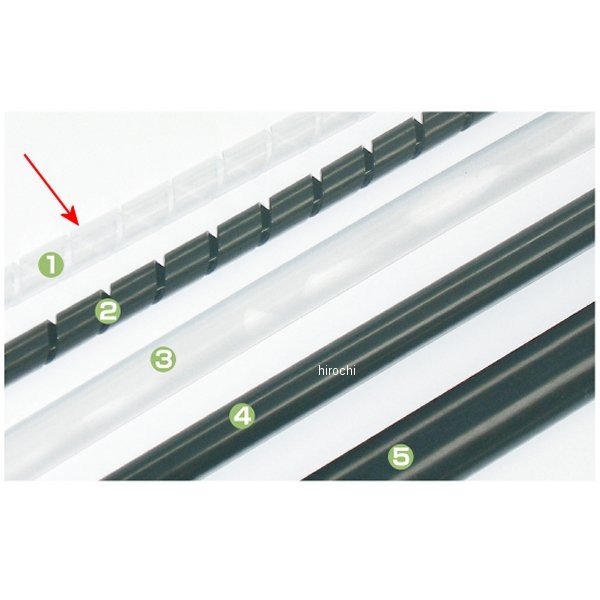 アクティブ ACTIVE スパイラルチューブカラー:ホワイト単位:1m(1)(2):コーティング無しホースに巻きつけてメッシュホースを保護します。(3)(4):オフロードやモタード用に使用します。ホースに先に通してからホースエンドを組み込みます。(5):ガイドチューブを止めるのに使用します。ヒートガンなどで熱をかけて収縮させます。※画像をご確認下さい。画像には全タイプが含まれています。