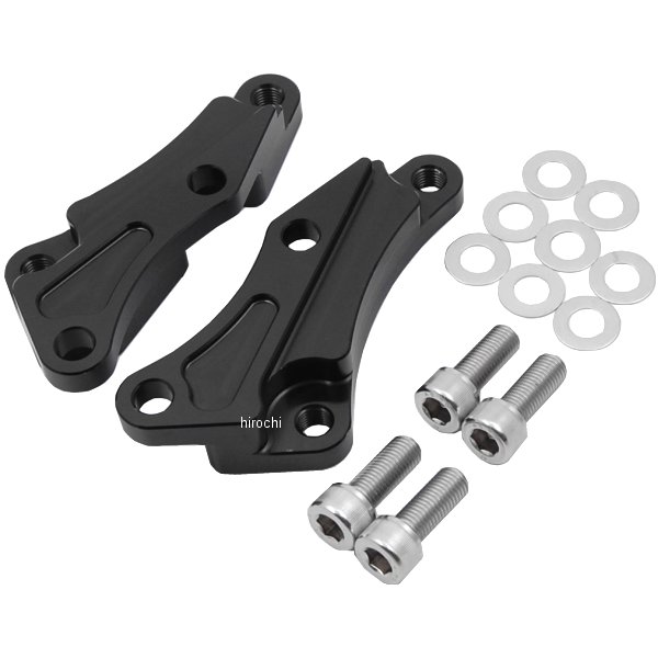 アクティブ ACTIVE フロントキャリパーサポート00年-03年 カワサキ Ninja ZX-12Rカラー:ブラック対応キャリパー:brembo製65mm 4パッド対応ローター:スタンダード φ320ディスク区分:ダブルディスクキャリパーボルトピッチ:brembo 40mm:P1.5、brembo 65mm:P1.25、NISSIN:P1.25、TOKICO:P1.25材質:アルミ2017S(アルマイト処理)付属品:キャリパーマウント用ステンレスボルト、0.5mmシム取り付けピッチが40mmや65mmのキャリパーを、スタンダードローターサイズに組み合わせるためのキャリパーサポート。材質はアルミ削り出しにアルマイト処理を施し、高強度、高耐久性を確保。40mmピッチ対応のキャリパーサポートは全て「brembo製 40mmキャスティングキャリパー」で設計。26.5mmのオフセットがセンターになっているため、AP、NISSIN製のキャリパーに使用する場合は付属のシムで調整をしてください。(6POTキャリパーには対応しません。)キャリパー個体の製品誤差修正も付属のシムが有効です。キャリパーやローターの変更で、ローターとパッドの当たり面が変わります。その場合、パッドのローターに当たらない面を削り落として使用してください。brembo製65mmピッチ 2PADキャリパーには使用できません。