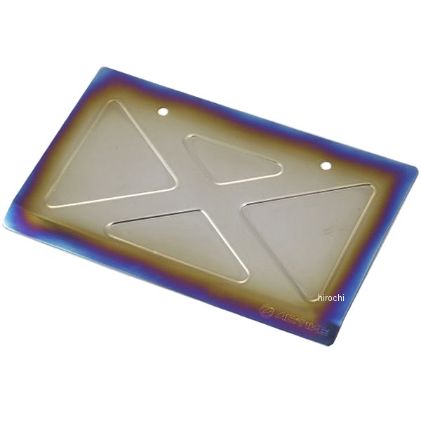 アクティブ ACTIVE チタン ナンバープレートベース重量:128g材質:チタンチタンの焼け色が美しいナンバープレートベース。1mm厚のチタン材にリブや曲げ加工を施し、強度をもたせています。リフレクターを別途ご用意ください。