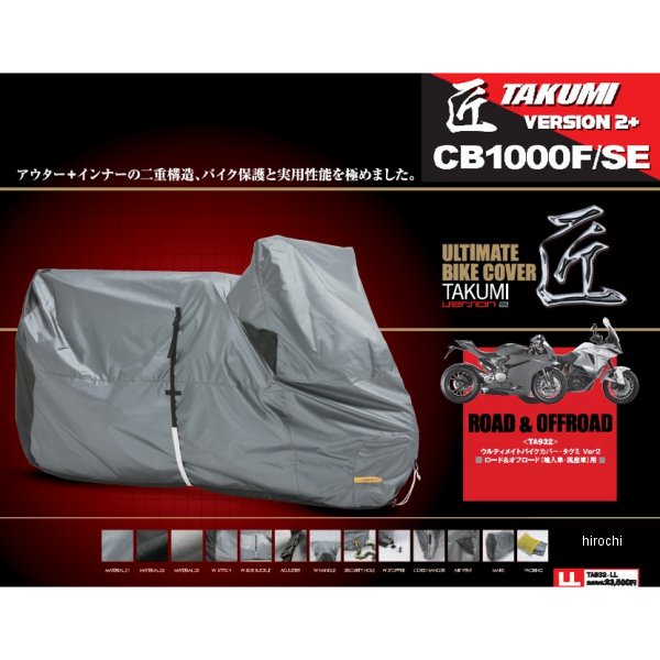 【数量限定】7701TA932PCB100 匠 TAKUMI バイクカバー バージョン2+ ホンダ CB1000F/SE用匠カバーの機能をそのままに、ハンドルを左に切ってサイドスタンドで傾けた状態で裁断した匠ヴァージョン2プラス。「HONDA CB1000F/SE用」が限定販売になります。専用カバーなので被せた時にツッパリやたるみが無く理想のフィット感を実現したプレミアムカバーです。※数量限定のため、ご注文いただいたタイミングによっては商品がご用意できない場合がございます。予めご了承下さい。※寸法変更のカスタム車には適合しない場合があります。※商品画像はイメージです。実際の商品と色や形状が異なる場合がございますのでご注意ください。