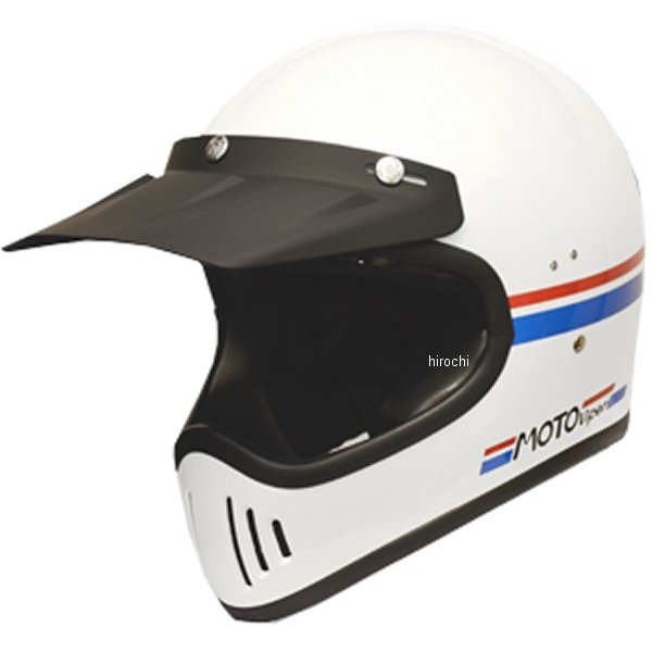 モトバイパー Moto-Viper フルフェイスヘルメット HOPPERサイズ:L(59cm-60cm未満)カラー:VINTAGE LINE(ホワイト)【素材】ABS樹脂一体構造内装:発泡スチロール/ポリエステル【仕様説明】排気量制限無しヴィンテージオフスタイルでシングルやアメリカンスタイルにもマッチするフルフェイスヘルメットです。インナーシールド付きで日差しをカットして快適に使用できます。スタイルに合わせて付属のバイザーを取り付ける事も可能です。内装着脱、洗濯可能です。トンネル内や夜間のインナーシールドの使用はご遠慮下さい。【規格】SG【届出事業者】坤成実業廠股彬有限公司【検査機関】一般財団法人 製品安全協会