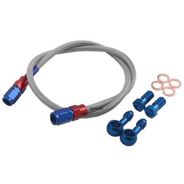 スウェッジライン SWAGE-LINE フロント ブレーキホースキット03年-07年 ホンダ ホーネット250・ブレーキホースは10mm単位の延長指定が出来ます。※延長分が合計で500mmを超える場合は500mmごとに1100円(税込)の追加料金がかかります。・ご注文時に「マスター側ホース+100mm、キャリパー側ホース+50mm」等を備考欄に記入してください。・バンジョーネジピッチ、アダプター角度は可能です。※カシメられたバンジョーを除く・アダプタータイプ、ボルトタイプ、数量、色の変更はできません。・キャンセル・交換・返品については、承れませんので予めご了承願います。ホース色:クリアコーティングホース素材:ステンレスメッシュバンジョー色:レッド/ブルーバンジョー素材:アルミフルード:無し取り廻し:ノーマルホース1:[20°バンジョー]+ストレートフィッティング-ストレートフィッティング+[20°バンジョー]/710[750]mmボルトピッチ:マスター側:1.25(シングル)、キャリパー側:1.25(シングル)【付属品】ホース(フィッティング付き)バンジョーアダプターバンジョーボルトクラッシュワッシャーホースセパレーター(一部除く)汎用取扱説明書製品保証書