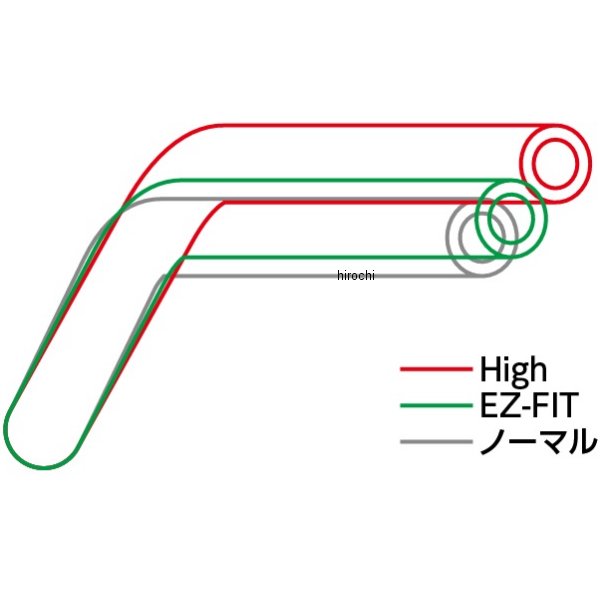 エフェックス EFFEX イージーフィットバー09年-16年 ZRX1200DAEGタイプ:EZ-FITカラー:ブラック材質:アルミ重量:560gノーマル比 移動量:7mm アップ/7mm バックサイズ:幅690mm×高さ61mm×奥行き(引き)135mmハンドル径:22.2φ内径:14mm絞り角:26°立ち角:61°ブレーキホース適合:○スロットルケーブル適合:○チョークケーブル適合:-クラッチケーブル(ホース)適合:○スイッチ穴加工済みブレーキホース、ケーブル類は交換が不要です。※純正ハンドルバーエンドは使用できなくなります。(EFFEX ハンドルバーウエイト(内径φ14)をご利用下さい。)※機種によっては、車検証記載の全幅と異なる場合があります。【EZ-FIT BARタイプの特徴】バランス良く、快適な乗車姿勢に。純正ハンドルより、約7mm手前/上になります。【イージーフィットバーの特徴】車種ごとにベストポジションを追求したEZ-FIT BAR、HIGH、LOW、PLUSの4タイプ設定。ハンドル幅や絞り角などを変更して日本人にふさわしい乗車姿勢を実現しています。エフェックス・イージーフィットバーはノーマルのハンドル形状をベースにグリップ部分を平行移動。バランスの良さを維持しながら、ライダーのもうちょっとに応える最適位置を追求しました。テーパータイプには装着角度を微調整する際に便利なインジケーターをレーザー加工済み。レバーホルダー用の直線区間を約5mm延長したことで、レバーを内側に追い込んでタッチとストローク感を改善できます。車種によってはグリップ位置をさらに上げて快適性を高めたHIGH、グリップ位置をさらに下げてスポーティな操作感を追求したLOWもラインナップ。製品ごとに明記した移動量も参考にしてお選びください。