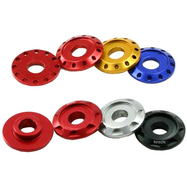 ディーアールシー DRC アルミスペーサー φ18 M6用 タイプ01汎用カラー:ブルー素材:アルミサイズ:φ18mmタイプ:01M6アルミボルト用φ18mmのアルミスペーサー。材質は軽量なA6061-T6アルミニウムを採用。ブルー・レッド・ゴールド・チタン・ブラックの5色展開。4パターンのデザインから選べる。1セット : 4個入りまたは20個入りをラインナップ。特徴:ラジエターシュラウド・ロアフォークガードの取り付け部分などに幅広く適応。