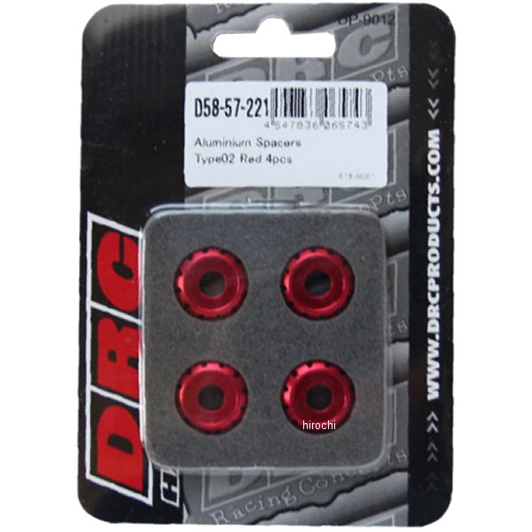 ディーアールシー DRC アルミスペーサー φ18 M6用 タイプ02汎用カラー:レッド素材:アルミサイズ:φ18mmタイプ:02M6アルミボルト用φ18mmのアルミスペーサー。材質は軽量なA6061-T6アルミニウムを採用。ブルー・レッド・ゴールド・チタン・ブラックの5色展開。4パターンのデザインから選べる。1セット : 4個入りまたは20個入りをラインナップ。特徴:ラジエターシュラウド・ロアフォークガードの取り付け部分などに幅広く適応。