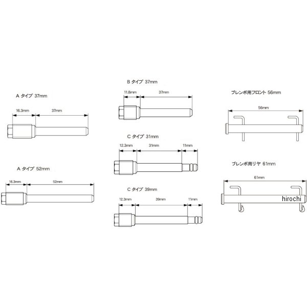 ディーアールシー DRC ブレーキピン 39mm Cタイプ汎用ステンレスブレーキピン用補修用ピン。ブレンボ用フロント/ブレンボ用リヤは、ブレーキピンクリップ付属します。