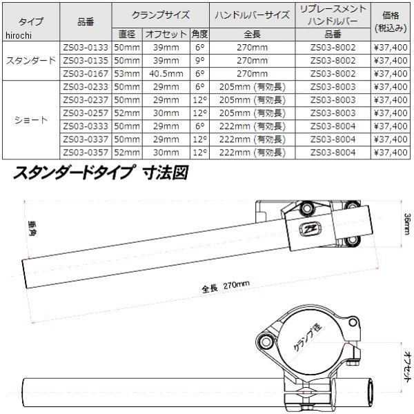 ジータ ZETA フライトハンドルバー汎用タイプ:スタンダード(全長:270mm)【クランプサイズ】・直径:50mm・角度:9度・オフセット:39mm