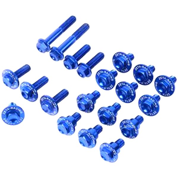 ジータ ZETA 外装アルミボルトキット18年 RM-Z450【 セット内容 】・レーサー:フロントナンバープレート、フォークガード、シュラウド、サイドパネルボルト・トレール車:フォークガード、シュラウド、サイドパネルボルトカラー:青入数:22本入り