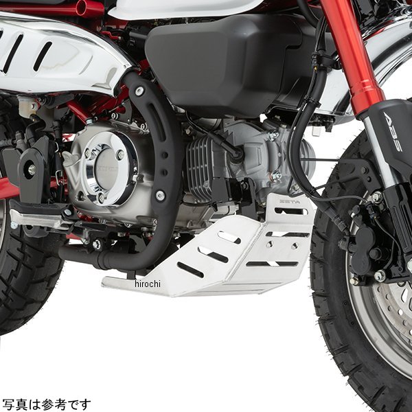 ジータ ZETA エンジンプロテクション アンダーガード19年-20年 ホンダ モンキー125スキッドプレート:アルミ合金製 ヘアライン仕上げ固定ブラケット:スチール製 ブラック塗装【仕様説明】アルミ合金製3.2mm厚のエンジンガードです。オフロード走行での飛び石などからエンジンを守ります。スリット加工によりプロテクションと排熱性を両立。純正マフラーとDELTA バレル-4sミニマフラーに対応。(他社製マフラーは取付未確認です。)※ハードな使用には対応できません。大きな石に当てたり、レーシングスタンドに乗せるなどの行為は、フレームのみならず、エンジンの破損につながります。