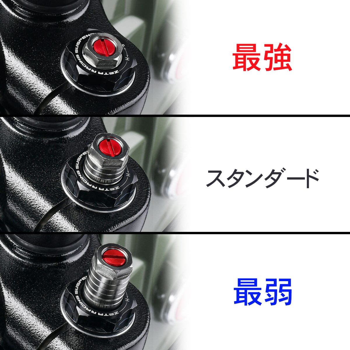 ZE56-10550 ジータ ZETA フロントフォークトップキャップ23年 ホンダ ハンターカブ CT125適合型式:JA65カラー:ブラック素材に7000系アルミ合金を使用し、細部にわたってCNC加工を施すことで強度アップと軽量化を実現。 ダンピングアジャスターが設定される車両(純正アジャスターを流用する一部の車両を除く)には調整ダイヤルを装備し、工具を使うことなくセッティングが可能。エアサス以外の全てのモデルにエアブリーダーを設定し、ワンプッシュで大気圧に調整可能。色鮮やかなカラーアルマイト仕上げはヴィジュアルの向上やドレスアップ効果も高い。