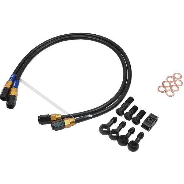 スウェッジライン SWAGE-LINE フロント ブレーキホースキット94年-99年 ホンダ NSR250R・ブレーキホースは10mm単位の延長指定が出来ます。※延長分が合計で500mmを超える場合は500mmごとに1100円(税込)の追加料金がかかります。・ご注文時に「マスター側ホース+100mm、キャリパー側ホース+50mm」等を備考欄に記入してください。・バンジョーネジピッチ、アダプター角度は可能です。※カシメられたバンジョーを除く・アダプタータイプ、ボルトタイプ、数量、色の変更はできません。・キャンセル・交換・返品については、承れませんので予めご了承願います。車両型式:MC28ホース色:ブラックスモークコーティングホース素材:ステンレスメッシュバンジョー色:ゴールド/ブラックバンジョー素材:アルミフルード:無し取り廻し:ノーマルホース1:[ストレートバンジョー]+ストレートフィッティング-ストレートフィッティング+[20°バンジョー]/560[600]mmホース2:[ストレートバンジョー]+ストレートフィッティング-ストレートフィッティング+[20°バンジョー]/560[600]mmボルトピッチ:マスター側:1.25(ダブル)、キャリパー側:1.25(シングル)x2【付属品】ホース(フィッティング付き)バンジョーアダプターバンジョーボルトクラッシュワッシャーホースセパレーター(一部除く)汎用取扱説明書製品保証書
