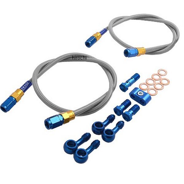 スウェッジライン SWAGE-LINE フロント ブレーキホースキット93年-07年 カワサキ ゼファー75096年-02年 カワサキ ゼファー750RS・ブレーキホースは10mm単位の延長指定が出来ます。※延長分が合計で500mmを超える場合は500mmごとに1100円(税込)の追加料金がかかります。・ご注文時に「マスター側ホース+100mm、キャリパー側ホース+50mm」等を備考欄に記入してください。・バンジョーネジピッチ、アダプター角度は可能です。※カシメられたバンジョーを除く・アダプタータイプ、ボルトタイプ、数量、色の変更はできません。・キャンセル・交換・返品については、承れませんので予めご了承願います。ホース色:クリアコーティングホース素材:ステンレスメッシュバンジョー色:ゴールド/ブルーバンジョー素材:アルミフルード:無し取り廻し:ノーマルホース1:[20°バンジョー]+ストレートフィッティング-ストレートフィッティング+[20°バンジョー]/740[780]mmホース2:[20°バンジョー]+ストレートフィッティング-ストレートフィッティング+[20°バンジョー]/790[830]mmボルトピッチ:マスター側:1.25(ダブル)、キャリパー側:1.25(シングル)x2【付属品】ホース(フィッティング付き)バンジョーアダプターバンジョーボルトクラッシュワッシャーホースセパレーター(一部除く)汎用取扱説明書製品保証書