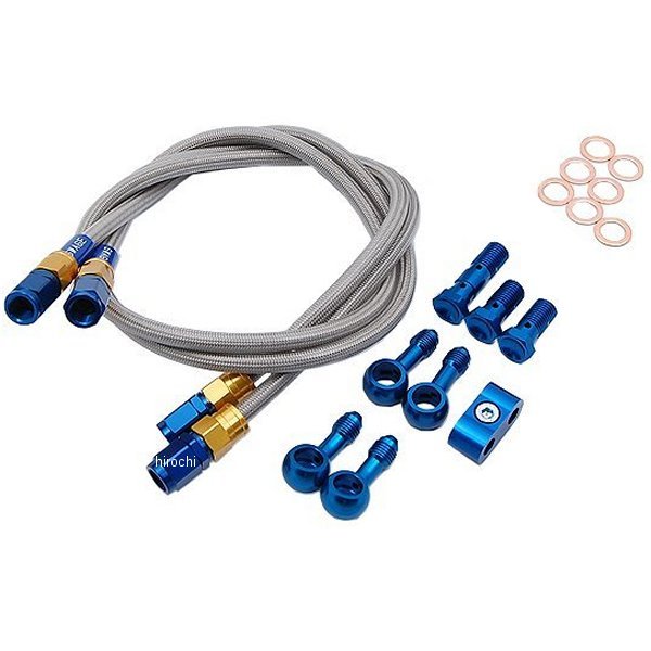 スウェッジライン SWAGE-LINE フロント ブレーキホースキット98年-08年 カワサキ ZRX40098年-08年 カワサキ ZRX400-2・ブレーキホースは10mm単位の延長指定が出来ます。※延長分が合計で500mmを超える場合は500mmごとに1100円(税込)の追加料金がかかります。・ご注文時に「マスター側ホース+100mm、キャリパー側ホース+50mm」等を備考欄に記入してください。・バンジョーネジピッチ、アダプター角度は可能です。※カシメられたバンジョーを除く・アダプタータイプ、ボルトタイプ、数量、色の変更はできません。・キャンセル・交換・返品については、承れませんので予めご了承願います。フロントキャリパー6ポッド車用ホース色:クリアコーティングホース素材:ステンレスメッシュバンジョー色:ゴールド/ブルーバンジョー素材:アルミフルード:無し取り廻し:ノーマルホース1:[ストレートバンジョー]+ストレートフィッティング-ストレートフィッティング+[20°バンジョー]/740[780]mmホース2:[ストレートバンジョー]+ストレートフィッティング-ストレートフィッティング+[20°バンジョー]/790[830]mmボルトピッチ:マスター側:1.25(ダブル)、キャリパー側:1.25(シングル)x2【付属品】ホース(フィッティング付き)バンジョーアダプターバンジョーボルトクラッシュワッシャーホースセパレーター(一部除く)汎用取扱説明書製品保証書