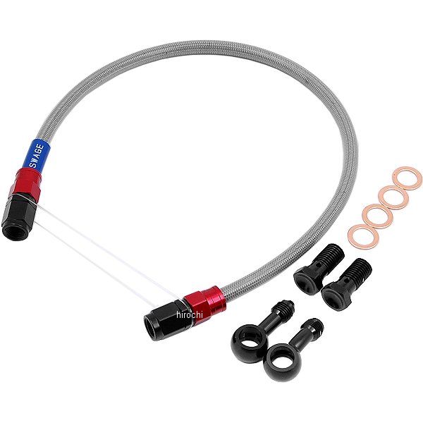 スウェッジライン SWAGE-LINE リア ブレーキホースキット94年-97年 カワサキ ZRX40095年-97年 カワサキ ZRX400-2・ブレーキホースは10mm単位の延長指定が出来ます。※延長分が合計で500mmを超える場合は500mmごとに1100円(税込)の追加料金がかかります。・ご注文時に「マスター側ホース+100mm、キャリパー側ホース+50mm」等を備考欄に記入してください。・バンジョーネジピッチ、アダプター角度は可能です。※カシメられたバンジョーを除く・アダプタータイプ、ボルトタイプ、数量、色の変更はできません。・キャンセル・交換・返品については、承れませんので予めご了承願います。ホース色:クリアコーティングホース素材:ステンレスメッシュバンジョー色:レッド/ブラックバンジョー素材:アルミフルード:無し取り廻し:ノーマルホース1:[20°バンジョー]+ストレートフィッティング-ストレートフィッティング+[ストレートバンジョー]/440[480]mmボルトピッチ:マスター側:1.25(シングル)、キャリパー側:1.25(シングル)【付属品】ホース(フィッティング付き)バンジョーアダプターバンジョーボルトクラッシュワッシャー汎用取扱説明書製品保証書