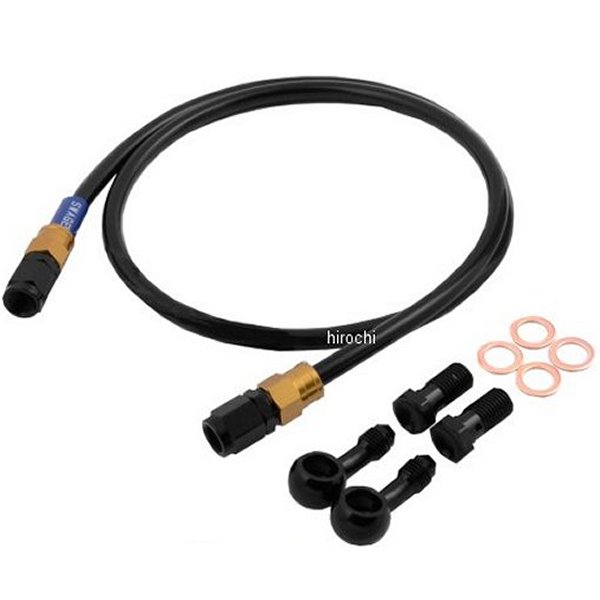 スウェッジライン SWAGE-LINE フロント ブレーキホースキット81年-87年 ホンダ CBX400F・ブレーキホースは10mm単位の延長指定が出来ます。※延長分が合計で500mmを超える場合は500mmごとに1100円(税込)の追加料金がかかります。・ご注文時に「マスター側ホース+100mm、キャリパー側ホース+50mm」等を備考欄に記入してください。・バンジョーネジピッチ、アダプター角度は可能です。※カシメられたバンジョーを除く・アダプタータイプ、ボルトタイプ、数量、色の変更はできません。・キャンセル・交換・返品については、承れませんので予めご了承願います。※82年 インテグラ、83年 カスタム適合不可ホース色:ブラックスモークコーティングホース素材:ステンレスメッシュバンジョー色:ゴールド/ブラックバンジョー素材:アルミフルード:無し取り廻し:ノーマルホース1:[20°バンジョー]+ストレートフィッティング-ストレートフィッティング+[20°バンジョー]/870[910]mmボルトピッチ:マスター側:1.25(シングル)、キャリパー側:1.25(シングル)【付属品】ホース(フィッティング付き)バンジョーアダプターバンジョーボルトクラッシュワッシャーホースセパレーター(一部除く)汎用取扱説明書製品保証書