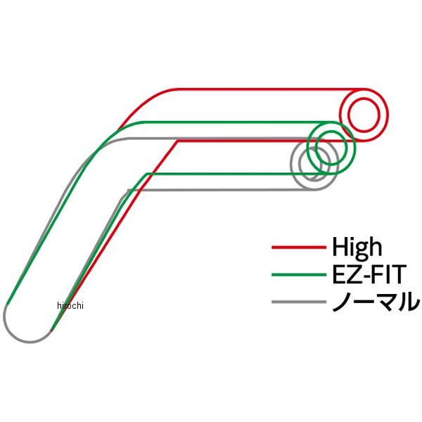 エフェックス EFFEX イージーフィットバー14年-16年 CB400SFタイプ:HIGHカラー:シルバー材質:アルミ重量:530gノーマル比 移動量:21mm アップ/23mm バックサイズ:幅669mm×高さ86mm×奥行き(引き)145mmハンドル径:22.2φ内径:14mm絞り角:22°立ち角:57°ブレーキホース適合:×スロットルケーブル適合:○チョークケーブル適合:-クラッチケーブル(ホース)適合:○スイッチ穴加工済みブレーキホースは30mmロングへの交換が必要です。※純正ハンドルバーエンドは使用できなくなります。(EFFEX ハンドルバーウエイト(内径φ14)をご利用下さい。)※機種によっては、車検証記載の全幅と異なる場合があります。【EZ-FIT BAR HIGHタイプの特徴】もっと楽な乗車姿勢に。純正ハンドル位置より、14mm~30mm手前/上になります。【イージーフィットバーの特徴】車種ごとにベストポジションを追求したEZ-FIT BAR、HIGH、LOW、PLUSの4タイプ設定。ハンドル幅や絞り角などを変更して日本人にふさわしい乗車姿勢を実現しています。エフェックス・イージーフィットバーはノーマルのハンドル形状をベースにグリップ部分を平行移動。バランスの良さを維持しながら、ライダーのもうちょっとに応える最適位置を追求しました。テーパータイプには装着角度を微調整する際に便利なインジケーターをレーザー加工済み。レバーホルダー用の直線区間を約5mm延長したことで、レバーを内側に追い込んでタッチとストローク感を改善できます。車種によってはグリップ位置をさらに上げて快適性を高めたHIGH、グリップ位置をさらに下げてスポーティな操作感を追求したLOWもラインナップ。製品ごとに明記した移動量も参考にしてお選びください。