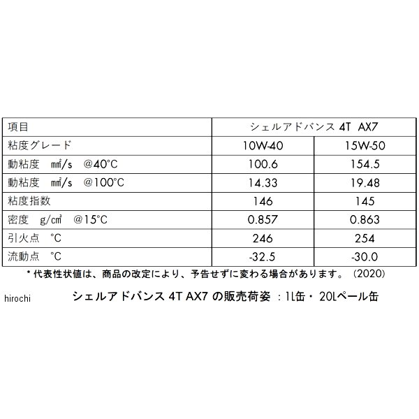 シェルアドバンス Shell ADVANCE 4T AX7 4ストロークエンジンオイル粘度(SAE):15W-50(化学合成テクノロジー)内容量:20Lペール缶【仕様説明】API SM,JASO MA2空冷式4ストロークオートバイエンジン用一体型ギアボックスと湿式クラッチを備えたオートバイエンジン用公道走行メインのツーリング、通勤通学の普段使い、街乗り用エンジン内部をクリーンに保ち、より効率的な伝達と強化された応答性エンジンノイズと振動を低減し、エンジンを長く保護エンジン内部にスラッジが堆積するのを防ぐのに役立ちます※運送途中に生じたペール缶のキズ・ヘコミ等 につきましては、本製品の返品事由とはなりませんので予めご了承ください