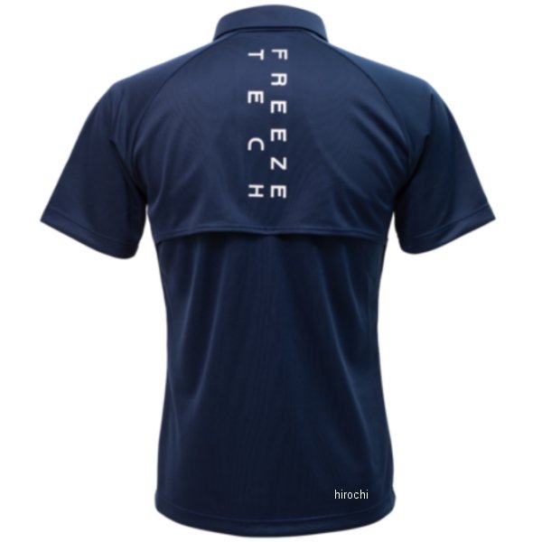 フリーズテック FREEZE TECH 冷感ベンチレーション付きポロシャツサイズ:XLカラー:ネイビー【仕様説明】接触冷感に加えて吸水速乾性のある素材で汗をかいてもベタつきが軽減され、背中をベンチレーション仕様にすることによって通気性も確保した暑さ対策用の半袖ポロシャツ。【冷感プリント】エリスリトール、キシリトールを含有。冷感プリント生地が皮膚から発生する水分(汗)を吸収すると、その吸熱特性により生地温度が下がり、冷感を付与。風を受けることで冷感をさらに強く感じることができます。【消臭機能】表面にあるミクロの穴がニオイ成分を吸着・分解し、不快な臭いの発生を防ぎます。※この製品は生地を特殊加工しているため(白も含む)、着用前に一度洗ってください。※他の洗濯物と混ぜると色移りする可能性があります。