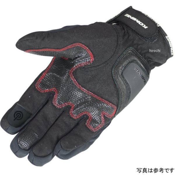 コミネ KOMINE 秋冬モデル ウインターグローブ カルタゴ (スマホ対応)サイズ:Sカラー:ブラック/レッドプロテクター標準装備:拳、掌素材 ポリエステル、ナイロン、ポリウレタン、ネオプレン、山羊革、サーモプラスチックウレタン、ポリエステル仕様説明 伸縮スパンデックス生地を部分的に使用し、運動性を損なわない設計の暖かいウインターグローブです。拳にはソフトタイプのプロテクターを内蔵し、プラスチックパームスライダーがついています。SMART Tip搭載でスマートフォン操作が可能。透湿防水素材を使用し、保温性を高める中綿入りです。立体裁断により、運動性を高めています。夜間被視認性を高めるリフレクターつき。※完全防水ではありません。袖口からの水の浸入にご注意ください。