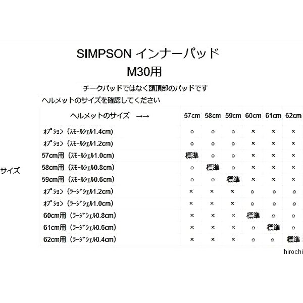 シンプソン SIMPSON インナーパッドM30/RX1/M10用サイズ:61cm(ラージシェル0.6cm)カラー:ネイビー