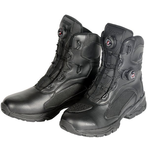 フラッグシップ FLAGSHIP タクティカルライディングブーツサイズ:23.5cmカラー:ブラック【素材】ナイロン/合成皮革/クイックフィットシステム▪防水仕様▪オリジナルソール▪シフトガード▪くるぶしパッド素早い脱着を可能とするクイックフィットシステムを二つ装備し履き口と甲部分をそれぞれ独立して調整可能。様々な場面で高いグリップ力を発揮するオリジナルソールや透湿防水フィルム「ヴォクサーム」を用いた多用途ライディングブーツ。