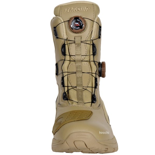 フラッグシップ FLAGSHIP タクティカルライディングブーツサイズ:26.0cmカラー:ベージュ【素材】ナイロン/合成皮革/クイックフィットシステム▪防水仕様▪オリジナルソール▪シフトガード▪くるぶしパッド素早い脱着を可能とするクイックフィットシステムを二つ装備し履き口と甲部分をそれぞれ独立して調整可能。様々な場面で高いグリップ力を発揮するオリジナルソールや透湿防水フィルム「ヴォクサーム」を用いた多用途ライディングブーツ。