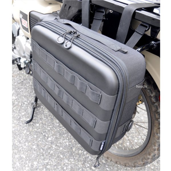 フラッグシップ FLAGSHIP カリュウドサイドバッグサイズ:横320x縦260x奥行き110-200mmカラー:ブラック容量:9-12L【素材】上蓋:PU合皮下蓋:ナイロンオックス裏地:ポリエステル起毛【仕様説明】CT125ハンターカブ専用。軽量で型崩れがしにくいEVA素材のサイドバッグ。デザイン性と拡張性を両立するウェビングテープを装備。※適合他社製バッグサポートデイトナ製サドルバッグサポート:品番97014キジマ製バッグサポート:品番210-4764