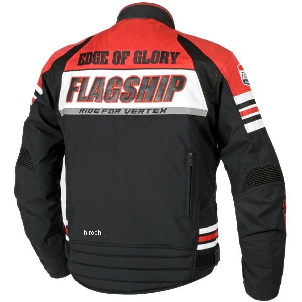 フラッグシップ FLAGSHIP 秋冬モデル ブライトジャケットサイズ:Mカラー:レッド標準装備プロテクター:肩、肘、背、胸【素材】表地:ポリエステル(PUコーティング)/ストレッチニット裏地:ポリエステルメッシュインナー:ナイロン(PUコーティング)/リブニット/中綿【仕様説明】しっかりとハリ感がありながら軽さにも拘った生地を採用。脇や袖、腹部にはストレッチ素材を採用し見た目以上に動きやすく軽快な着心地を実現。温度調整がし易いように背中にはベンチレーションを備え、中綿インナーは着脱式とし秋・冬・春に対応する3シーズンジャケットです。フラッグシップらしくワッペンや刺繍等を用いた独特な存在感が魅力の1着です。