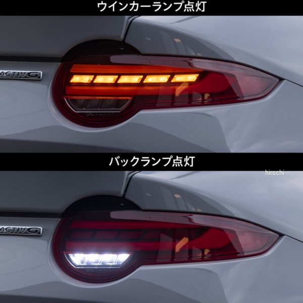 TMNDRU-SB-2 ヴァレンティ VALENTI LEDテールランプ ULTRAマツダ ロードスター/ロードスターRF 型式:ND5RE/NDERE 年式:2024.1~ 注意:OEA機能接続時、社外セキュリティ装着車は正常に動作しない可能性があります。カラー:ライトスモーク/ブラッククローム■シーケンシャルウインカー(流れるウインカー)採用! 法改正により日本国内でも保安基準適合となった「シーケンシャルウインカー」を採用! もちろん保安基準にも適合となり、テールランプ本体裏側の配線接続方法で「流れる」「流れない」の設定も簡単に変更可能。 ■両側合計 148LED & 4LEDライトバーを採用! 3D形状のLEDライトバーによるポジションランプ点灯が幻想的なリアビューを演出し、後続車の目を釘付けにします。 ポジション/ブレーキ、ウインカー、バックランプの全てに高輝度LEDを採用したオールLEDモデル。 インナーレンズを採用し、直接LEDチップが見えない仕様としたことで消灯状態でもスタイリッシュな印象に。 ■ボディカラーやお好みに合わせて選べる、2色のカラーバリエーション! ○レッドレンズ/グロスブラック ○ライトスモーク/ブラッククローム 付属のガーニッシュ部分はお好みに応じてボディカラーなどに塗装することが可能です。ガーニッシュ色:樹脂素地(黒色) ■ハイフラッシュ制御回路内蔵! ハイフラッシュ制御回路をテール本体に内蔵、ハイフラッシュ現象の心配もなし!取り付けは純正カプラーを使用するカプラーオンタイプです。 ■保安基準適合・1年保証 Eマーク取得済み。保安基準適合製品です。 欧州車などのテールランプにも搭載されている機能で、ロック時またはアンロック時にテールランプがモーション点灯をします。 注目度抜群の機能で周囲の視線を惹きつけます。※機能の動作には常時電源、イグニッション電源への接続が必要です。 OEA機能の動作には常時電源、イグニッション電源への接続が必要です。《標準作業時間 3.5時間》