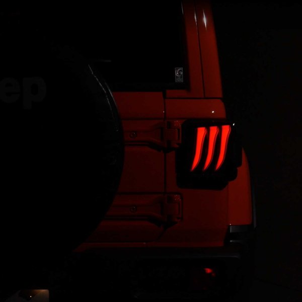 ヴァレンティ VALENTI VL LEDテール ULTRA ラングラー ライトスモーク/グロスブラックジープ ラングラー 型式:JL##L/S 年式:2018.3~ 全グレード対応※注意:OEA機能接続時、社外セキュリティ装着車は正常に動作しない可能性があります。OEA機能の動作には常時電源、イグニッション電源への接続が必要です。【商品紹介】・両側合計 148LED & 4LEDライトバーを採用。3D形状のLEDライトバーによるポジションランプ点灯が幻想的なリアビューを演出し、後続車の目を釘付けにします。ポジション/ブレーキ、ウインカー、バックランプの全てに高輝度LEDを採用したオールLEDモデル。ウインカー部、バックランプ部はリフレクターに反射させ、直接LEDチップが見えない仕様としたことで消灯状態でもスタイリッシュな印象に。・オープニング&エンディングアクション機能搭載。欧州車などのテールランプにも搭載されている機能で、ロック時またはアンロック時にテールランプがモーション点灯をします。注目度抜群の機能で周囲の視線を惹きつけます。※機能の動作には常時電源、イグニッション電源への接続が必要です。・シーケンシャルウインカー(流れるウインカー)採用。法改正により日本国内でも保安基準適合となった「シーケンシャルウインカー」を採用。もちろん保安基準にも適合となり、テールランプ本体裏側の配線接続方法で「流れる」「流れない」の設定も簡単に変更可能。・ハイフラッシュ制御回路内蔵。ハイフラッシュ制御回路をテール本体に内蔵、ハイフラッシュ現象の心配もなし!取り付けは純正カプラーを使用するカプラーオンタイプです。※ハロゲンテールランプ車両は付属のハイフラ防止抵抗の取り付けが必要です。・保安基準適合 1年保証Eマーク取得済み。保安基準適合製品※です。※ハロゲンテールランプ車両は付属の反射板の取り付けが必要です。
