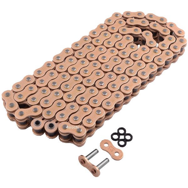 EK 江沼 チェーン 530SRX2 シリーズチェーンサイズ:530リンク数:110シールタイプ:QXリングジョイントタイプ:MLJ(カシメ)カラー:ゴールド(GP;GP)SRX:標準高品質QXリングチェーン。低価格で高品質を実現した標準的なQXリングチェーンEK独自のQXリングは、Oリングチェーンに比べ50%フリクションを減らし、しかも50%耐久性を増しています。・長寿命を保証するソリッドブッシュ。・高耐久ソリッドローラ。・四方かしめピン。・特殊合金プレート。・軽量化のための内プレート穴採用。・特殊PTFEグリースは粘着力に優れ、耐摩耗性向上に貢献。