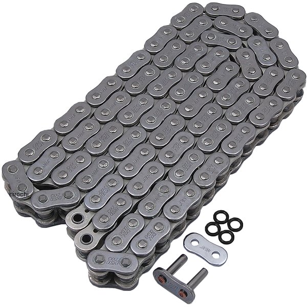 EK 江沼 チェーン 530ZVX3 シリーズチェーンサイズ:530リンク数:110シールタイプ:NXリングジョイントタイプ:MLJ(カシメ)カラー:クロムシルバー/ニッケルシルバー(CR;NP)ZVX:最高級、高強度、高耐久性、軽量化NXリングチェーン。大排気量、ハイパワーマシンに対応させた高強度、高耐久性、軽量化を実現させたNXシールチェーン。EK独自のNXリングはQXリングに比べ高耐久性、軽量化を実現させています。また、シールの形状変更によりチェーンの高強度化を実現させています。・従来のZVXシリーズより引張り強度に対する剛性が向上・長寿命を保証するソリッドブッシュ。・高耐久ソリッドローラ。・四方かしめピン。・特殊合金プレート。・軽量化のための内プレート穴採用。・特殊PTFEグリースは粘着力に優れ、耐摩耗性向上に貢献。
