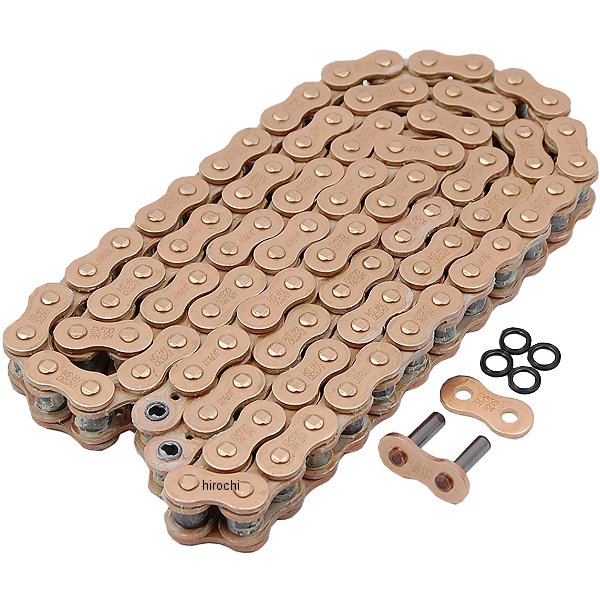 EK 江沼 チェーン 530RR/SM シリーズチェーンサイズ:530リンク数:98シールタイプ:SXリング(薄型シールチェーン)ジョイントタイプ:MLJ(カシメ)カラー:ゴールド(GP/GP)530サイズに薄型シールSXリングを採用し、ノンシールチェーンと同等の幅(最大幅22.9mm)を実現したシールチェーン530RR/SMシリーズ。通常の530シールチェーンではクリアランスが確保できない旧車やハーレー等の車両にお使いいただけるチェーンです。また、薄型とすることで軽量化も実現しています。