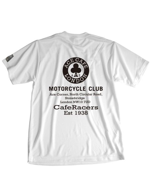 エースカフェロンドン ACE CAFE LONDON DRY-Tシャツ MCCサイズ:Sカラー:ホワイト素材:ポリエステル100%紫外線防止指数:UPF50以上汗ばむ季節に活躍する、吸汗速乾生地を使用したDRYシャツです。一般的なスポーツ用DRYシャツより厚手な4.7oz素材を使用し、透け感が気になりません。2種類の編み方を組合せる事で、通気性にも優れています。紫外線遮蔽率98%、紫外線防止指数はUPF50以上と優れたUVカット素材です。汗などの水分を素早く吸い上げ、拡散乾燥させます。その際に、生地と触れる肌などから乾燥に必要な熱を奪う事で、ひんやりした肌ざわりになります。