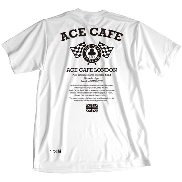 エースカフェロンドン ACE CAFE LONDON DRY-Tシャツ FLAGサイズ:Lカラー:ホワイト素材:ポリエステル100%紫外線防止指数:UPF50以上汗ばむ季節に活躍する、吸汗速乾生地を使用したDRYシャツです。一般的なスポーツ用DRYシャツより厚手な4.7oz素材を使用し、透け感が気になりません。2種類の編み方を組合せる事で、通気性にも優れています。紫外線遮蔽率98%、紫外線防止指数はUPF50以上と優れたUVカット素材です。汗などの水分を素早く吸い上げ、拡散乾燥させます。その際に、生地と触れる肌などから乾燥に必要な熱を奪う事で、ひんやりした肌ざわりになります。