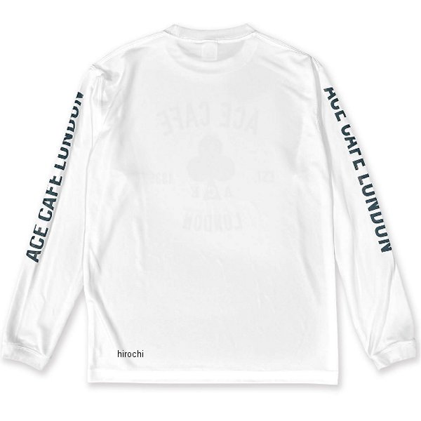 エースカフェロンドン ACE CAFE LONDON DRY-ロングTシャツ EST.1938サイズ:Lカラー:ホワイト素材:ポリエステル100%紫外線防止指数:UPF50以上紫外線遮蔽率:98%【仕様説明】汗ばむ季節でも、さらっとシルキーな着心地が特徴の吸汗速乾生地を使用したDRYシャツシリーズです。一般的なスポーツ用DRYシャツより厚手な4.7oz素材を使用し、透け感が気になりません。汗などの水分を素早く吸い上げ、拡散乾燥させます。その際に、生地と触れる肌などから乾燥に必要な熱を奪う事で、不快なべとつきなどを軽減し、ひんやりした肌ざわりになります。2種類の編み方を組合せる事で、通気性にも優れています。・日常使いでも使いやすいデザインシャツ。・エンデューロやオフロード走行時のオフロードジャージ代わりの使用にもおすすめ。・腕ロゴは、ロンググローブを装着しても重ならない位置に配置。・紫外線遮蔽率98%、紫外線防止指数はUPF50以上と優れたUVカット素材です。※サイズは日本サイズ(メンズ)です。※プロテクターと組み合わせる場合は、プロテクター着用時にあわせたサイズをお選びください。※採寸データには1cm程度の誤差が出る場合がございます。